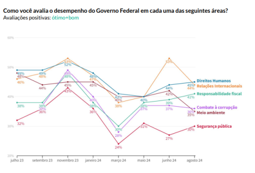 A proporção daqueles que consideram o desempenho como bom/ótimo caiu para 35%, uma redução de 7 pontos percentuais desde junho, quando era de 42%.