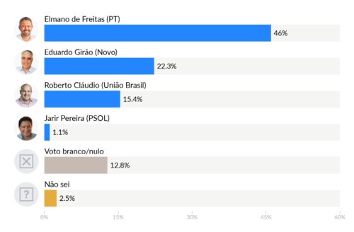 Aqui, Elmano assume liderança isolada. O dado mais importante, porém, é a fragmentação do campo oposicionista. Sem um nome dominante, os votos se dispersam — e o governador passa a operar em posição confortável. Esse cenário reforça um ponto central: a reeleição de Elmano se relaciona menos com seu desempenho isolado e mais da capacidade da oposição de se unificar.