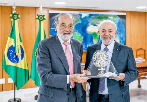 O empresário mexicano Carlos Slim, fundador da América Móvil, maior conglomerado de telecomunicações da América Latina, e que controla a operadora Claro, no Brasil, foi recebido nesta sexta-feira (19) pelo presidente Luiz Inácio Lula da Silva, no Palácio do Planalto. Eles conversaram sobre o panorama da economia e investimentos programados para os próximos anos. Um dos homens mais ricos do planeta, Slim tem uma fortuna estimada em quase US$ 100 bilhões, segundo estimativas da revista norte-americana Forbes. Após o encontro com Lula, o empresário elogiou os rumos da economia brasileira.