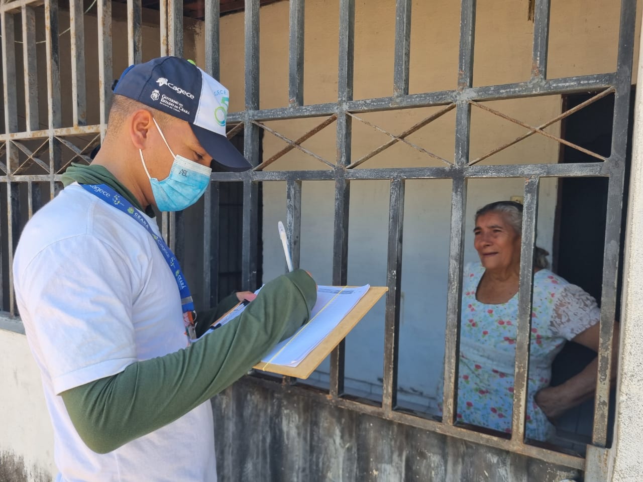 Durante as visitas aos imóveis, as equipes socioambientais da Cagece conversam com os moradores para sensibilizar sobre a importância da obra que a Companhia está realizando no bairro e da essencialidade das interligações para a saúde da própria população e para o meio ambiente.