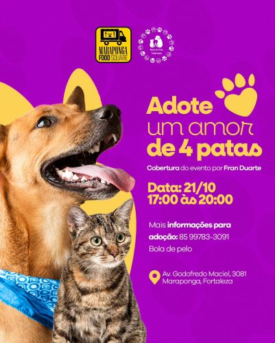 O Maraponga Food Square se prepara para sediar o seu primeiro “Adote um Amor de 4 Patas”, um evento de adoção de animais neste sábado, 21, que promete aquecer os corações dos amantes de pets. O evento em parceria …