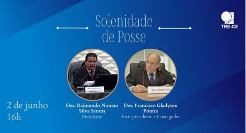 A cerimônia de posse do novo presidente do Tribunal Regional Eleitoral do Ceará (TRE-CE), desembargador Raimundo Nonato Silva Santos, e do vice-presidente e corregedor regional eleitoral, desembargador Francisco Gladyson Pontes, acontecerá no próximo dia 2 de junho, às 16h, …
