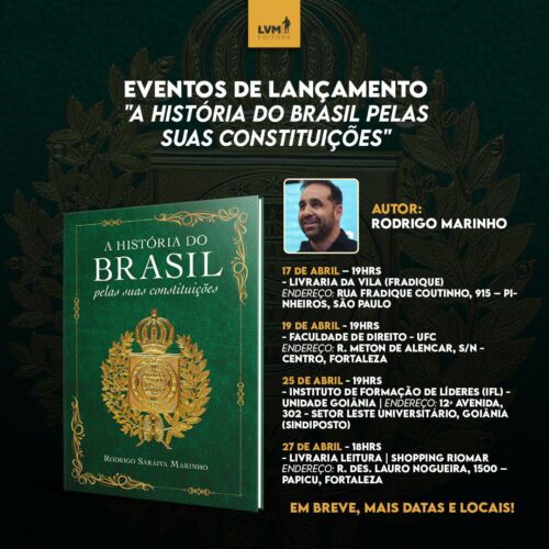 O advogado cearense Rodrigo Marinho lança nesta quinta-feira, 27, o livro “A História do Brasil pelas suas Constituições”. O evento será na Livraria Leitura, a partir das 18h, no Shopping RioMar Fortaleza. Marinho é um dos expoentes da linha …