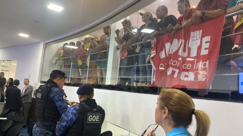 Durante discurso do prefeito Sarto (PDT) na Câmara Municipal de Fortaleza, professores que exigiam reajuste no piso salarial interromperam a fala para protestar. Um dos apoiadores era a vereadora Ana Paula, que foi vista protestando de frente ao prefeito. …