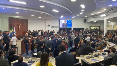 O prefeito José Sarto (PDT) durante discurso na Câmara Municipal de Fortaleza, foi interrompido por professores que exigiam reajuste no piso salarial. “Peço aos educadores, com muita gentileza, um pouco de calma”, disse Sarto para os manifestantes que protestavam. …