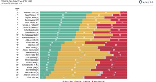 No ranking da Atlasintel, o Governo Elmano integra o primeiro bloco, formado por governos que combinam aprovação significativa com rejeição ainda controlada. Ele está: