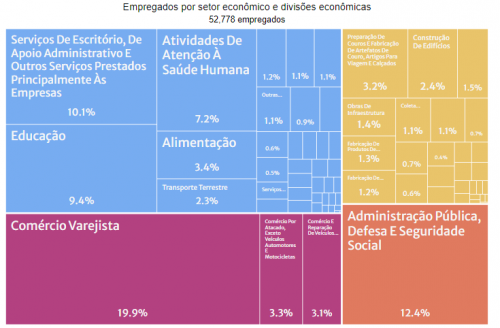 Em relação ao gênero, 47,4% dos trabalhadores eram mulheres, com remuneração média de R$ 2.385,37; 52,6% eram homens, com média de R$ 2.385,61.