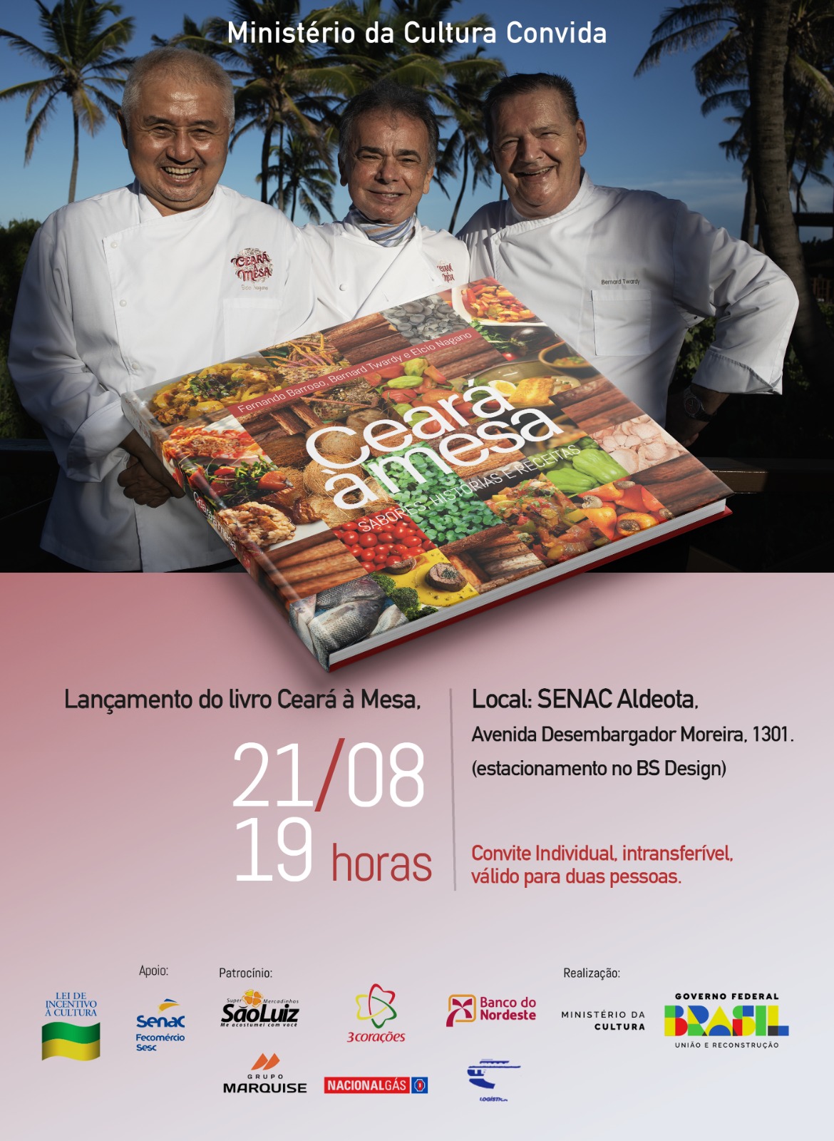 O livro “Ceará à Mesa – Sabores, Histórias e Receitas” traz narrativas sobre a cozinha cearense, as experimentações independentes, as receitas autorais, a busca pela qualificação e os insumos locais de qualidade, tendo como condutores os Chefs Fernando Barroso (in memoriam), Elcio Nagano e Bernard Twardy. A obra será lançada em um evento para convidados na noite da segunda-feira, 21, no auditório do Senac Aldeota.
