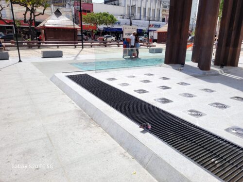 Outro vai ser o perfil da praça no século XXI, essa na qual caminho agora, buscando as alterações pelas quais passou desde que a visitei pela última vez – sendo a mais significativa delas a possibilidade de ver o poço remanescente dos tempos da Feira Velha. E volto a Oliveira Paiva, ainda no livro A afilhada. “Os moleques e as crioulas agrupavam-se em torno ao liso cacimbão de pedra lioz, no meio da área, e enchiam os potes e canecões no chafariz da Water Company, um quiosque de ferro, miudinho e bem-acabado”.