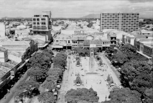 Salte-se meio século na cronologia da Capital. Na década de 1940, a praça do Ferreira continua sendo “o coração da cidade”, no dizer do memorialista Marciano Lopes em seu livro Royal Briar (2011), “coração que pulsava forte no mecanismo do relógio da sua famosa Coluna da Hora, em estilo art déco, de cimento e pó de pedra”. Veículos a motor, por um tempo movidos a gasogênio, transitavam à sua volta sem se dar conta dos canteiros, cortados à maneira dos jardins franceses, “das estátuas de louça representando as quatro estações, dos fícus-benjamins podados em formas de bolas, anéis saturninos, pirâmides e cubos” – a geometria dos conceitos de beleza de meados do século XX, da qual pouco restou.