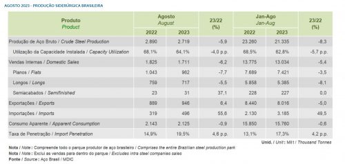 Para explicar melhor: a siderurgia brasileira vem passando por um processo de desaceleração, seja na produção de aço ou capacidade utilizada. Esta última, por exemplo, beirava 63% em agosto, enquanto a capacidade ociosa atinge 40%. Os números são do Instituto Aço Brasil.