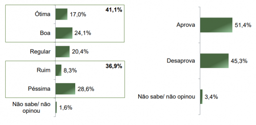 A avaliação “ruim” aumentou, passando de 6,5% em janeiro para 8,3% em julho. A avaliação “péssima” subiu de 24,3% para 28,6% no mesmo período.