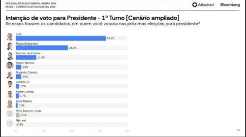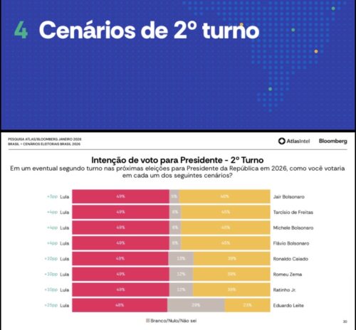 A pesquisa Atlasintel/Bloomberg de janeiro de 2026 oferece um retrato cristalino do tabuleiro presidencial menos de dez meses do pleito. O quadro parece ser mais estável do que aparenta à primeira vista. A leitura rigorosa dos dados aponta menos para uma disputa aberta e mais para uma, digamos, assimetria estrutural entre campo governista e oposição.