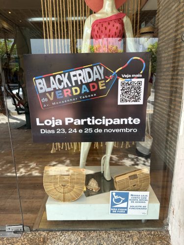 Lojistas do corredor comercial da Avenida Monsenhor Tabosa participam da campanha “Black Friday de Verdade”, nos dias 23, 24 e 25 de novembro. Trata-se de uma iniciativa promovida pela Associação dos Lojistas da Monsenhor Tabosa (Almont), com descontos de até 70%, que estarão sinalizados nas etiquetas e vitrines das lojas. Tem a adesão de grandes marcas, como AllDay Beach, D’Metal, Trama, Skyler, Liebe, Boldness, dentre outras, que vão oferecer descontos reais.