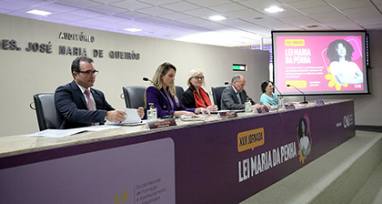 A abertura do evento, que continua nesta terça (8), contou também com a presença da biofarmacêutica Maria da Penha Fernandes, vítima de agressões e duas tentativas de homicídio realizadas pelo ex-marido.