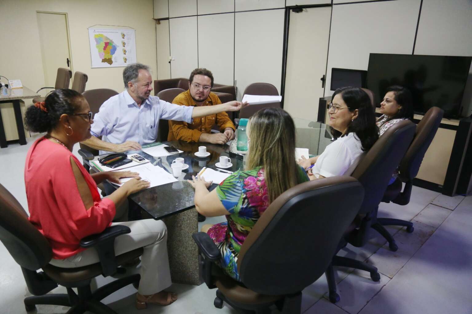 Também estiveram presentes ao encontro a secretária executiva de Planejamento e Gestão Interna da Secitece, Adeline Lobão, e a equipe do Instituto Centec.