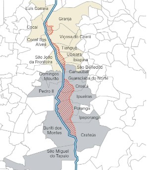 De acordo com as mais recentes movimentações processuais no STF, os dois entes federativos já apresentaram seus assistentes técnicos que vão acompanhar o estudo e conclusão elaborado pelos peritos do Exército Brasileiro. Segundo documento protocolado no final do mês passado e assinado pelo General de Brigada Marcis Gualberto Mendonça Junior, diretor do serviço geográfico do Exército Brasileiro, a região em disputa judicial abrange os seguintes municípios do Ceará e Piauí: